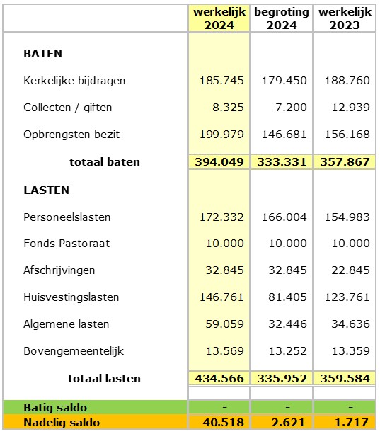 De Gereformeerde kerk Haren-Onnen is een geloofsgemeenschap die behoort tot de Protestantse Kerk in Nederland (PKN). In het statuut (kerkorde) van de PKN staat dit in ordinantie 2 artikel 1 als volgt omschreven “een gemeente is de gemeenschap, die geroepen, tot eenheid, getuigenis en dienst, samenkomt rondom Woord en sacramenten “. (ordinantie 1 artikel 1 lid 1 kerkorde). Deze gemeente is een zelfstandig onderdeel als bedoeld in artikel 2 boek 2 Burgerlijk wetboek en bezit rechtspersoonlijkheid. Dit is ook vastgelegd in ordinantie 11 artikel 5 lid 1 van de kerkorde. De kerkorde van de Protestantse Kerk in Nederland bevat o.m. bepalingen omtrent het bestuur, de financiën, toezicht en (tucht)rechtspraak die gelden voor de kerkleden, de gemeenten en andere onderdelen van deze kerk. Deze kerkorde is te vinden op www.protestantsekerk.nl/kerkorde De PKN heeft van de Belastingdienst een groepsbeschikking ANBI gekregen. Dat wil zeggen dat de afzonderlijke gemeenten en andere instellingen die tot dit kerkgenootschap behoren zijn aangewezen als ANBI. Dit is ook van toepassing op de Gereformeerde kerk Haren – Onnen. Samenstelling bestuur Het bestuur van de kerkelijke gemeente ligt bij de Kerkenraad en wordt gevormd door de ambtsdragers van deze gemeente. In onze gemeente telt de kerkenraad 24 leden, die worden gekozen door en uit de leden van de kerkelijke gemeente. Het College van Kerkrentmeesters telt 5 leden en is verantwoordelijk voor het beheer van de financiële middelen en de gebouwen van de gemeente, met uitzondering van diaconale aangelegenheden. De Kerkenraad is eindverantwoordelijk, wat tot uitdrukking komt in de goedkeuring van o.a. de begroting en de jaarrekening. Verder hebben zowel de Kerkenraad als het College, door het toezicht op de vermogensrechtelijke aangelegenheden, contact met het regionaal college voor de behandeling van beheerszaken. (Ordinantie 11, art. 3). Doelstelling/visie De PKN verwoordt in de eerste hoofdstukken van de Kerkorde wat zij gelooft en belijdt. Dit vormt de basis van haar kerkstructuur, haar organisatie, haar kerkrecht, haar ledenadministratie, haar arbeidsvoorwaarden en haar financiën. 1 – De PKN is overeenkomstig haar belijden gestalte van de ene heilige apostolische en katholieke of algemene christelijke Kerk die zich, delend in de aan Israël geschonken verwachting, uitstrekt naar de komst van het Koninkrijk van God. 2 – Levend uit Gods genade in Jezus Christus vervult de kerk de opdracht van haar Heer om het Woord te horen en te verkondigen. 3 – Betrokken in Gods toewending tot de wereld, belijdt de kerk in gehoorzaamheid aan de Heilige Schrift als enige bron en norm van de kerkelijke verkondiging en dienst, de drie-enige God, Vader, Zoon en Heilige Geest. Beleidsplan Het beleidsplan van de PKN is in te zien op www.protestantsekerk.nl/visienota Onder ANBI Beleid, beleidsplan vindt u het beleidsplan 2013-2017 van onze gemeente. http://haren.protestantsekerk.net/beleidsplan Beloningsbeleid De beloning van de predikanten van onze gemeente is geregeld in de ‘Generale regeling rechtspositie predikanten’. De beloning van de overige medewerkers in loondienst, zoals kerkelijk werkers en kosters/beheerders, is geregeld in de ‘ Arbeidsvoorwaardenregeling Protestantse Kerk in Nederland’. Beide regelingen zijn te vinden op www.protestantsekerk.nl/arbeidsvoorwaarden Leden van Kerkenraden, Colleges en commissies ontvangen geen vergoeding voor hun werkzaamheden. Alleen werkelijk gemaakte onkosten kunnen worden vergoed. Verslag Activiteiten De Kerkenraad heeft de algemene eindverantwoordelijkheid voor het in stand houden van een levende gemeente. Dat doet zij door zoveel mogelijk gemeenteleden in te schakelen bij het plaatselijk werk. Enkele taken zijn conform de kerkorde gedelegeerd naar afzonderlijke colleges, waaronder het College van Kerkrentmeesters en het College van Diakenen. Zij waken over de financiële slagkracht van de gemeente en leggen via een jaarverslag rekening en verantwoording af aan de kerkenraad. Een uittreksel van de belangrijkste gegevens treft u hieronder aan. Jaarverslag 2024 Het jaar 2024 stond voor een groot deel in het teken van de start van een proces om samen met de Hervormde gemeente Haren-Onnen te komen tot één Protestantse Gemeente. De doorlooptijd van dit proces is ca. twee jaar, waarbij de beoogde fusiedatum 1 maart 2025 is. In dit proces worden de beide kerken begeleid door een extern procesbegeleider. Er is een Werkgroep Samenwerking opgericht, waarin diverse mensen uit de beide kerken zitten, die de diverse stappen in het proces voorbereidt en voorlegt aan de kerkenraden en ook de gemeenteleden. In het najaar van 2023 is aan een 8-tal taakveldgroepen gevraagd om vanuit hun taakveld een deel van het nieuwe beleidsplan voor te bereiden. Deze taakvelden zijn: Erediensten, Pastoraat, Diaconaat, Vorming & Toerusting, Kerk in het Dorp, Jeugdwerk, Financiën & Gebouwen en Communicatie. Op basis van hun verslaglegging is het Beleidsplan opgesteld dat als basis voor de vorming van de beoogde nieuwe gemeente dient Op goedbezochte gezamenlijke gemeenteavonden zijn de gemeenteleden geïnformeerd over het verloop van het fusieproces. In 2024 is meerdere malen door de Kerkenraden van de Dorpskerk en de Gorechtkerk gezamenlijk vergaderd. Ook de beide Colleges van Kerkrentmeesters hebben al diverse malen samen vergaderd. Daarnaast werd en wordt er al veel samengewerkt door de beide Diaconieën (in de DIRA), bij het jeugdwerk Aan Boord, de kindernevendienst en bij Vorming en Toerusting. Naast de gezamenlijke zomerdiensten met de Hervormde gemeente zijn er het hele jaar door meerdere gezamenlijke diensten gehouden. Ook is, zoals inmiddels gebruikelijk, in de maand september de startdienst gezamenlijk gehouden. In oktober 2024 zijn een drietal nieuwe kerkenraadsleden bevestigd (twee pastorale ouderlingen en een ouderling-kerkrentmeester), is van een aantal kerkenraadsleden afscheid genomen (waaronder de voorzitter van de kerk